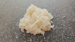 3. Den Knoblauch hacken, Salz oben drauf geben und mit dem Rücken eines Messers zu einem Mus zerdrücken oder in einem Mörser zerstampfen.