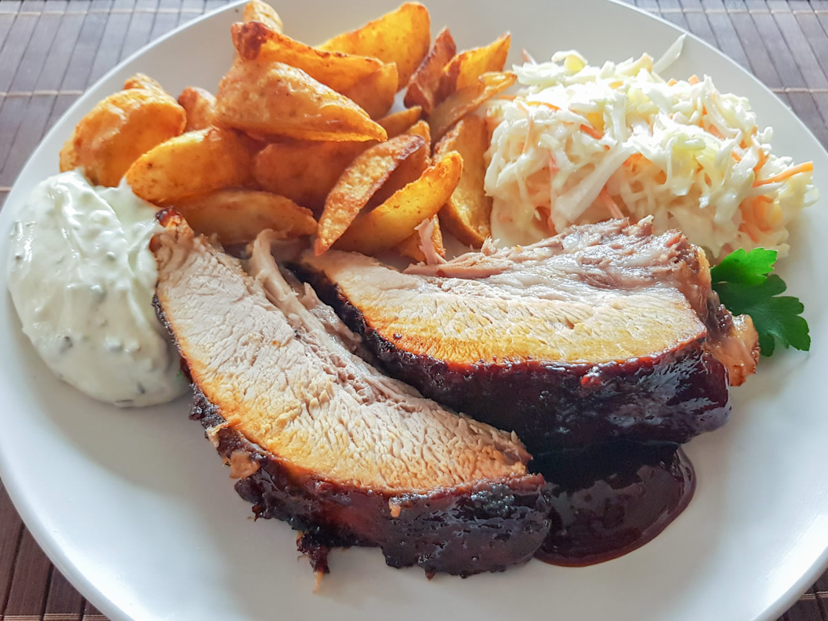 Nach Ablauf der vorgenannten Bratzeit die Dicke Rippe noch 2 Mal, alle 15 Min. mit der Sauce bepinseln.