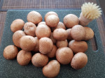Die Pilze säubern (nicht unter Wasser!) und dann in Viertel teilen. Kleine Champignons einfach nur halbieren, damit sie nicht zu klein werden.