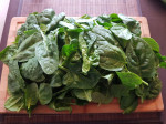 Waschen Sie den Blattspinat, lassen Sie ihn abtropfen, putzen Sie ihn, schneiden Sie ihn in kleinere Stücke und geben Sie ihn im Anschluss zu den Schalotten- und Knoblauchwürfeln in die Pfanne.