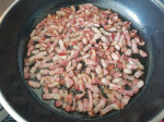 Den Bauchspeck in kleine Stücke schneiden, in einer Pfanne ein wenig auslassen - dabei nicht zu kross werden lassen - und für später beiseite stellen.